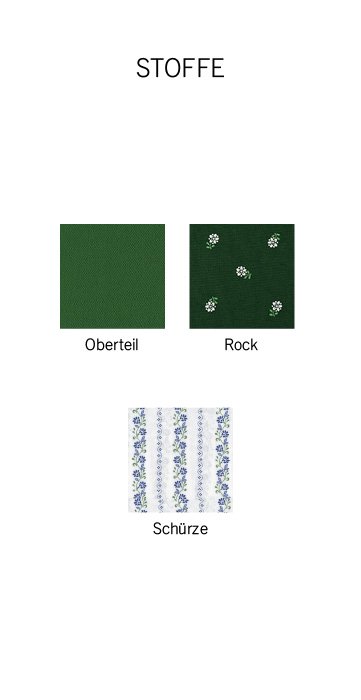 Rock: kleingeblümter Baumwolldruck, farblich zum Oberteil passend