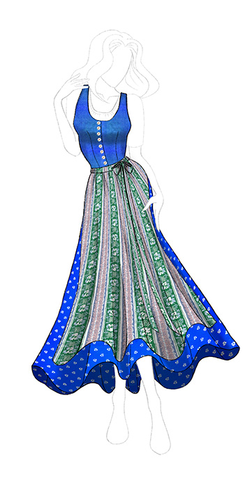 Die Blüte am Knopf symbolisiert die Apfelblüte im Granitztal. Das Dirndl wurde im Jahr 2019 von der Trachtengruppe Granitztal in Zusammenarbeit mit der Wolfsberger Trachtenwerkstatt neu erschaffen.