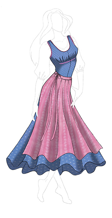 Das Jauntaler Sommerdirndl wurde in den 1950er Jahren erneuert. Das rosa-blaue Dirndl ist geradezu ein Abbild der Jauntaler Landschaft mit ihren rosa blühenden Hadnfeldern und dem zartblauen Himmel im Herbst.