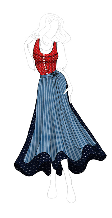 Die Oberkärntner Farbstellung (rotes Oberteil, blauer oder schwarzer Rock mit Streublumen und hellblauer Schürze), wie sie auch beim Katschtaler Sommerdirndl zu finden ist, ist noch der Trachtenarbeit von Frau Hadwig Bertold zu verdanken.