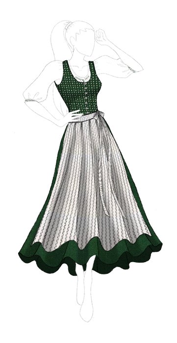 Schürze: weißgrundiger Baumwolldruck im Streifendesign passend zu Rock und Oberteil