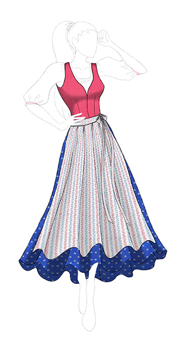 Rock: gegenfarbiger Baumwolldruckstoff mit Blümchenmuster